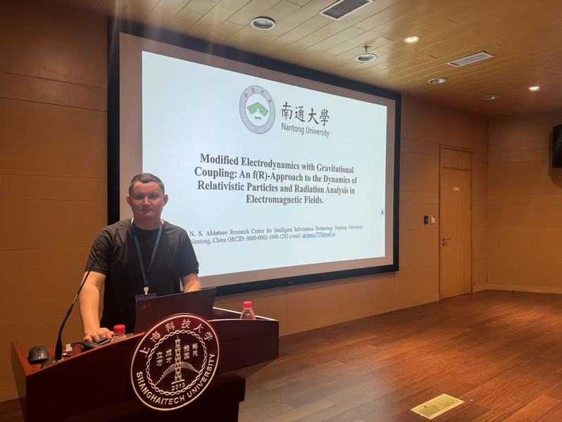 9月15日-19日,第十五届“周期性结构中相对论性电子辐射”国际研讨会在上海举办,我中心Nikolai Akintsov博士受邀参会,并作了题为《具有引力耦合的修正电动力学:电磁场中相对论粒子动力学与辐射分析的f(R)方法》的学术报告。