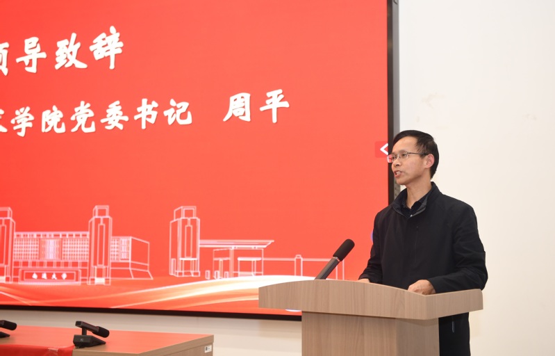 信息科学技术学院党委书记周平代表学院致辞,感谢南通博物苑志愿者“謇爱謇行”宣讲团将第100场宣讲安排在信息科学技术学院,让全院师生接受教育。他希望全院师生以“謇爱謇行”为镜,在追寻榜样的足迹中,厚植家国情怀、感悟家国担当、涵养实干品格、锤炼过硬本领,用奋斗书写属于自己的时代篇章。